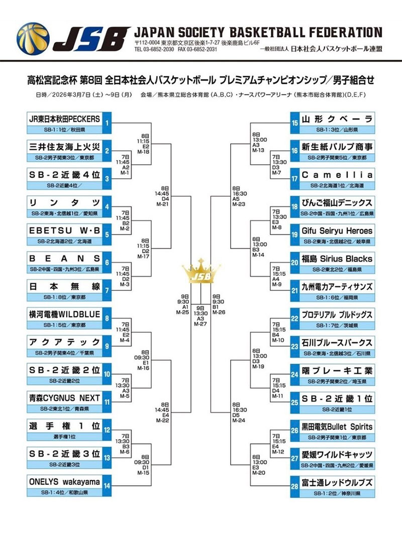 2024年 全日本社会人バスケットボール プレミアチャンピョンシップに出場します。